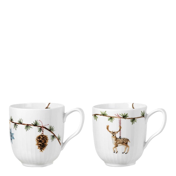 Hammershøi Christmas muggset från Kähler innehållande två julmuggar med motiv från 2020 respektive 2021 är ett vackert julset som förgyller såväg julfrukosten som fikastunderna. Muggarna i detta exklusiva set rymmer 33 cl och förenar det bästa av klassisk design och nostalgisk julstämning. De är dekorerade med de unika motiven från julsäsongerna 2020 och 2021, vilka är ritade av konstnären Rikke Jacobsen och hämtar inspiration från både vinterskogens botaniska element och traditionell juldekoration, allt tolkat med moderna linjer och varma färgtoner som väcker minnen av julen som den en gång var.