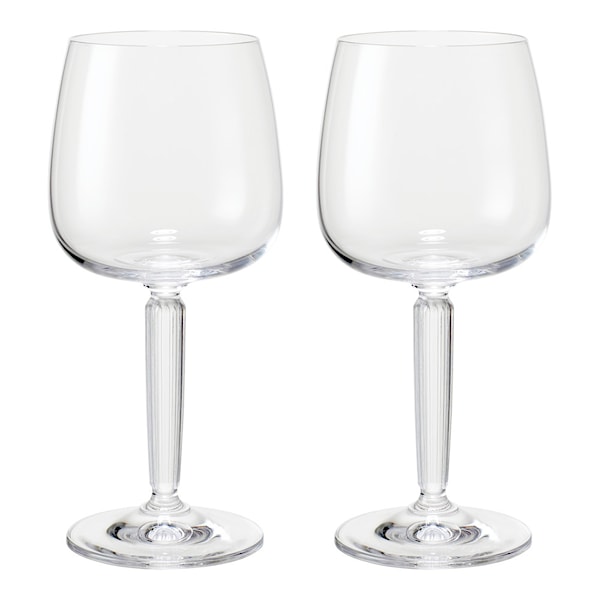 Glasen tål maskindisk och kommer i förpackningar om 2 rödvins- eller vitvinsglas, antingen i en klar version eller en version med grön stam och bas, vilket tillför ytterligare en ny dimension till både de ikoniska räfflorna och din dukning.