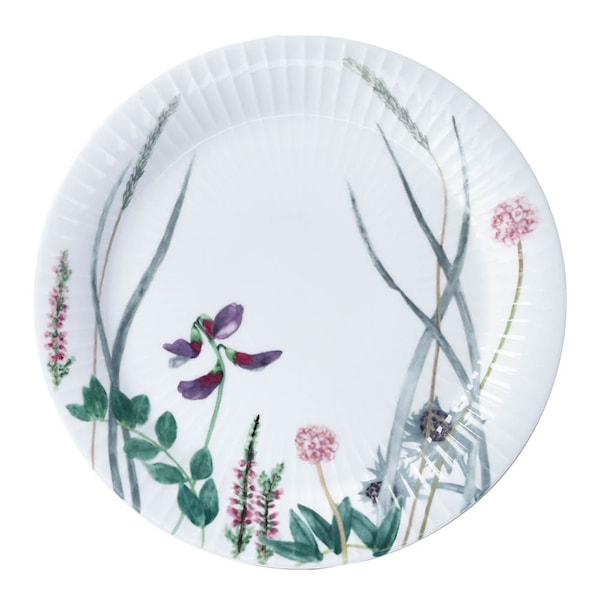 Tallriken är tillverkad i vitt porslin med Hammershøi-seriens klassiska räfflor, och motivet rör sig fritt och naturligt över ytan med en handmålad lätthet som ger ett unikt, somrigt uttryck. Perfekt för frukost, lunch eller smårätter – ensam eller som del av ett generöst sommarbord.