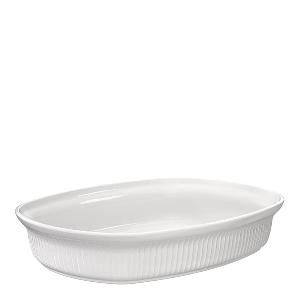 Kählers Hammershøi ugnsform på 39x29,5 cm är en elegant kombination av funktionalitet och tidlös design. Detta fat, tillverkat i keramik, har de ikoniska räfflorna och mjuka formerna som gjort Hammershøi-serien till en modern klassiker.