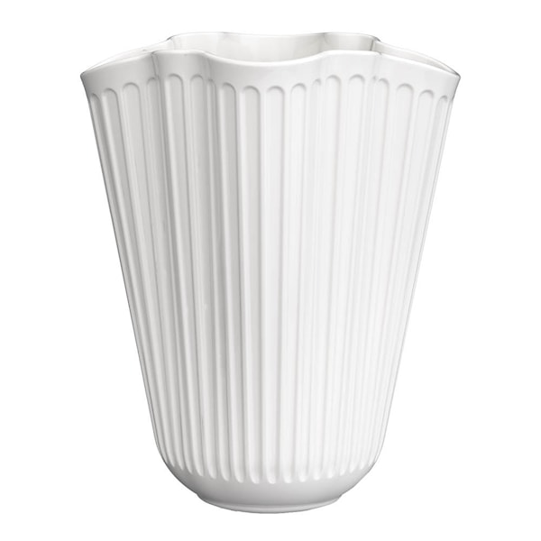 Kähler Hammershøi Unfold-vas är en modern hyllning till Kählers 10-årsjubileum för Hammershøi-serien. Denna vackra vas, med en höjd på 20,5 cm och en veckad form, är tillverkad i kritvitt keramik och förenar nostalgisk design med ett lekfullt och framtidsinriktat uttryck. Den unika formen gör att blommorna faller naturligt och elegant, där de försiktigt lutar sig mot kanterna samtidigt som de visuellt sträcker sig uppåt.