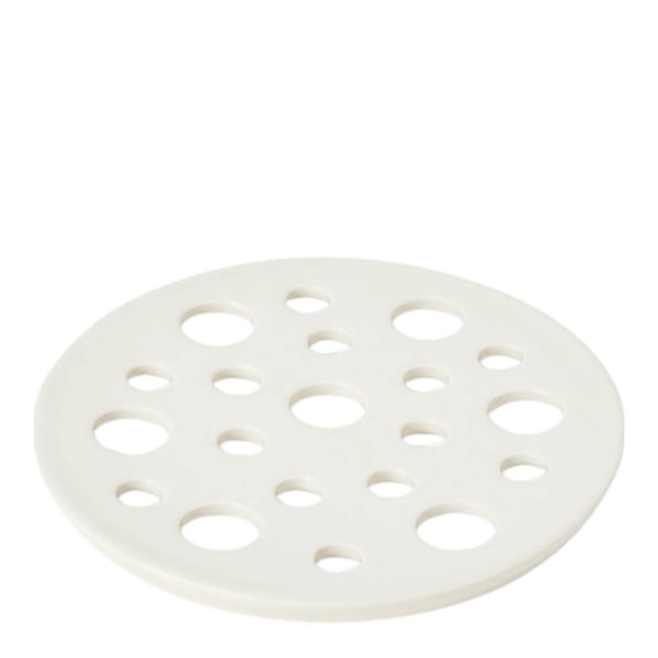 Kähler Signature insats 13,4 cm i vit keramik är en original reservdel för vaserna H20 cm i grönt och blått (artikelnr. 690480 och 690485). Insatsen placeras ovanpå vasen och har hål som håller blommorna upprätta – perfekt för balanserade och luftiga arrangemang.