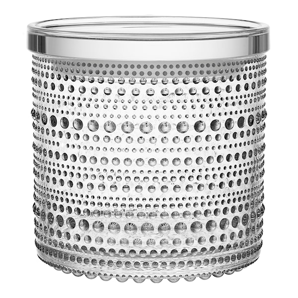 med ringar av små glaspärlor som pryder varje del i Iittalas Kastehelmi-kollektion. Denna unika struktur ger glasobjekten ett levande uttryck som fångar ljus på ett subtilt och vackert sätt. Serien formgavs ursprungligen av Oiva Toikka 1964 och återlanserades 2010, där den fortsätter att vara en uppskattad del av det nordiska designarvet.