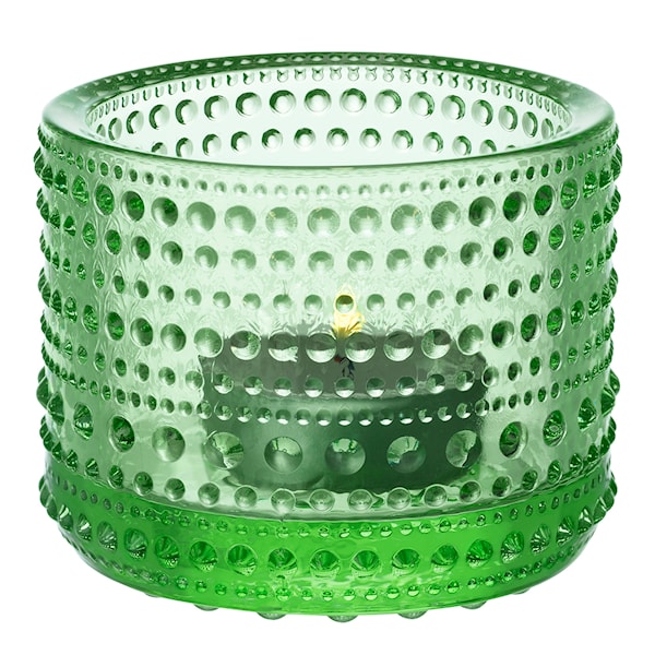 Iittala Kastehelmi ljuslykta 6,4 cm är en designikon skapad av Oiva Toikka år 1964, vars namn betyder ”daggdroppe” på svenska. Toikka hämtade sin inspiration från den finska naturen – från morgondaggens små, glittrande pärlor som samlas på grässtrån i gryningen. Det unika mönstret med sina små glaspärlor fångar ljuset på ett magiskt sätt och skapar ett varmt och levande sken när lyktan tänds.