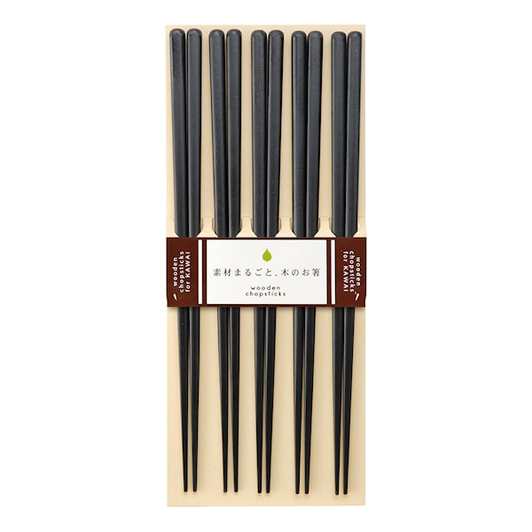 Fem par ätpinnar från japanska Kawai. Pinnarna är mörkt träfärgade och kan diskas i maskin.