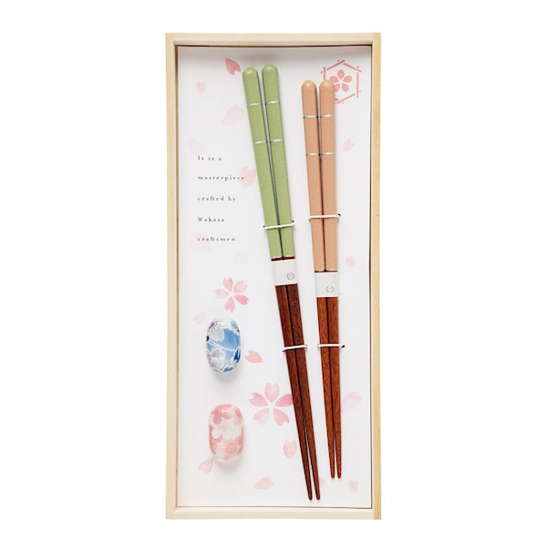 Kawai gåvoset med två par ätpinnar i jordnära färger och två stilfulla pinnstöd med blomsterdekor. Levereras i en fin trälåda som ger setet ett säsongsbetonat uttryck.