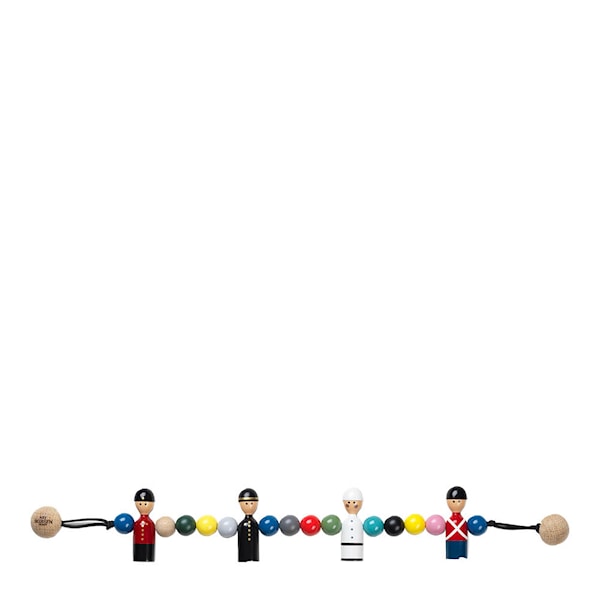 Förvandla barnvagnsturen till en ännu härligare upplevelse med denna vackra mobil i målad bok från Kay Bojesen. Utrustad med färgglada träkulor och charmiga små träfigurer, är den säker på att framkalla små leenden under promenaderna. Mobilen är lätt att fästa och passar alla barnvagnsmodeller.