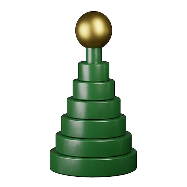 Julgran 13,5 cm grön – Julmagi tolkat i trä baserat på originaldesign från arkiven. Kay Bojesen skapar originella berättelser i trä året runt, och med julgranen i Kay Bojesens universum får du en ikonisk och stilren juldekoration i en välkänd form baserad på det klassiska stapeltornet. Trädets gröna färg är hämtad från den gröna ringen på tornet och kulan på toppen är målad i guld så att den glittrar som en stjärna. På bilder från arkiven kan man se att Kay Bojesen älskade att göra små jultablåer, och i det sammanhanget använde han själv stapeltornet som julgran för att skapa sina berättelser.