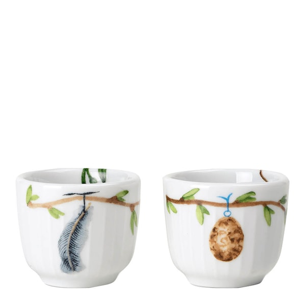 Hammershøi-universumet har fått en vacker tillskott med Kählers Hammershøi Spring äggkoppar, perfekta för att njuta av vårens mjukkokta ägg. Äggkopparna är dekorerade med handmålade motiv av nyutslagna grenar och fina vårblommor, skapade av konstnären Rikke Jacobsen och överförda till porslinet. Setet innehåller två äggkoppar och levereras i en elegant förpackning, vilket gör dem till en fin detalj på bordet under vårens frukostar.