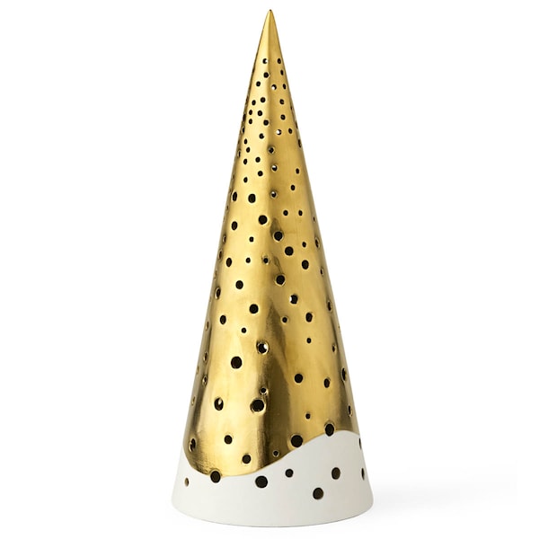 Nobili Ljuslykta 25,5 cm från varumärket Kähler och designad av det erkända designduon Bache & Bendix Becker, är denna ljuslykta ett verkligt konstverk. Dess unika form påminner om en julgran, men med en elegant och minimalistisk twist. Den genomtänkta mönstret och de många hålen i lyktan skapar en vacker reflektion av ljuset från värmeljuset, vilket gör att ljuset belyser rummet på ett oemotståndligt sätt.