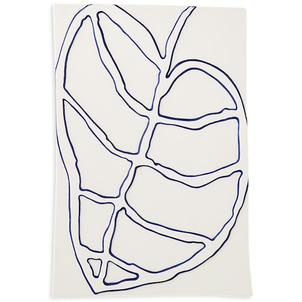 Mathias Malling Mortensens imponerande samling av keramikväggdekorationer är ett verk av precision. Relief drar inspiration från papperskonstens skarpa konturer, som om de klippts med en sax. Under olika ljusförhållanden förändras skuggorna och ger upphov till dynamiska och nya visuella upplevelser på väggen. Den glaserade vita ytan står i kontrast till de koboltblå, handmålade kanterna, vilket ger ett unikt uttryck. Dekorera med Reliefbladet enskilt, eller kombinera med andra stilfulla element från Relief-serien som Stjälk, Krona och Blomma.
