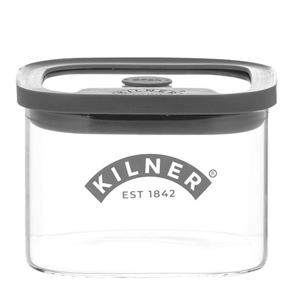 Kilner Fresh S förvaringsburk 0,5 L kombinerar elegans och funktion. Det tåliga borosilikatglaset och det smarta locket med vakuumventil gör att burken håller innehållet fräscht längre – perfekt för mindre mängder kaffe, ris, nötter eller torkade örter.