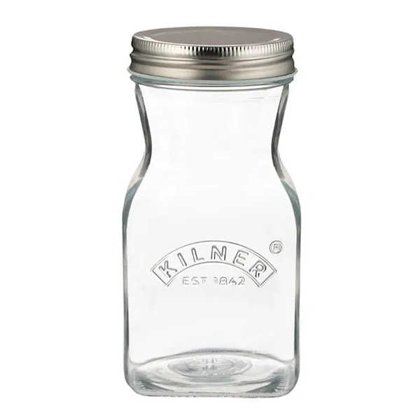 Juice och Sås Flaska 0,5 L Klar från Kilner är den mindre men lika multifunktionella flaskan, lämplig för konservering med 2-delat lock och skruvband. Flaskan lämpar sig att förvara och hälla en rad olika såser eller drycker från vatten, juicer, milkshakes och pastasåser i. Tack vare flaskan fyrkantiga form är den mycket yteffektiv och passar i sidodörren på kylen.