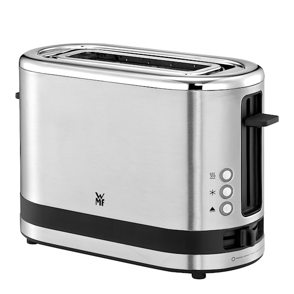 WMF KITCHENminis Brödrost, 1-skiva. Denna eleganta brödrost från WMF KITCHENminis-serien är designad för en skiva och är en platsbesparare i köket. Trots sin kompakta storlek har den en bred rostningsöppning som gör det möjligt att rosta tjockare brödskivor. Tillverkad av högkvalitativt Cromargan rostfritt stål, passar den perfekt i alla kök. Med sju justerbara rostningsnivåer kan du enkelt hitta den perfekta stekgraden för din smak. Brödet rostas jämnt tack vare den automatiska centreringen.