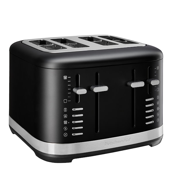 Rosta ditt favoritbröd, bagels eller annat varje dag med KitchenAid 5KMT4109, den här brödrosten för fyra skivor har extra breda fack och är tillräckligt rymlig för att rosta hembakat bröd av olika former och storlekar, samt engelska muffins och maffiga Artisan-godsaker.