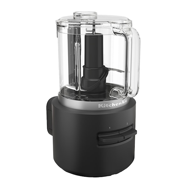 KitchenAid Go Cordless mini matberedare 5KFCR500BM i mattsvart är en trådlös mini matberedare med praktisk förvaring av tillbehör i behållaren. Batteri ingår inte, men batterimodellen 5KRB12 kan köpas separat som tillbehör. Den här matberedaren ger dig kraften att skapa och röra för att hantera varje recept, oavsett var du är. Dess kompakta och enkla förvaringsdesign gör den idealisk för användning både inomhus och utomhus.