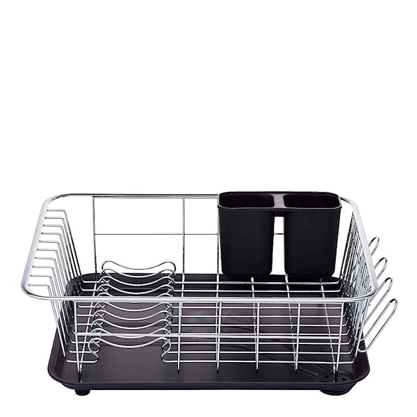 Med diskstället Deluxe Dish Drainer från brittiska Kitchen Craft blir matlagningens tråkigaste syssla lite mindre jobbig. Diskstället har en löstagbar bricka med dräneringshål och fötter, samt ett extra upphöjt ställ som låter disken torka snabbare. Stället har även en löstagbar bestickhållare med två fack, och en extra förvaring av knivar och andra längre redskap på sidan.