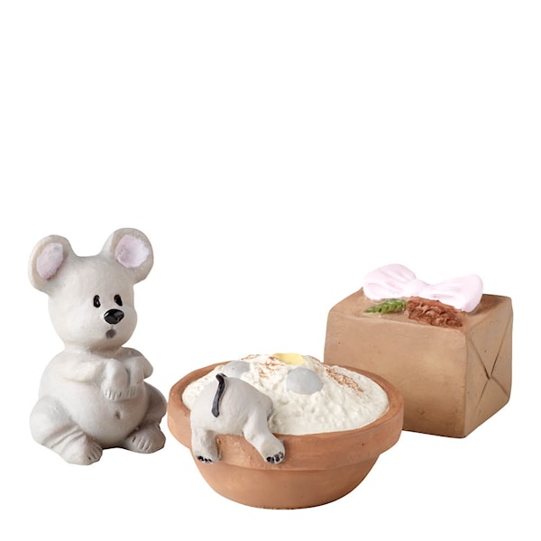 Musmamman Mussi och musungen Bette Nus från Klarborg är redo för risgrynsfest! Den ljuvliga doften sprider sig snabbt när Alvmamman sätter igång, och Mussi väntar artigt.