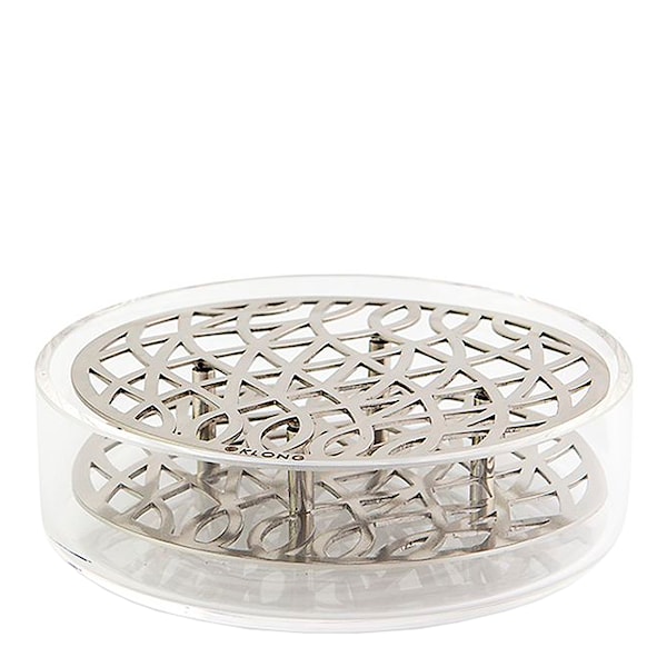 Vasen består av en munblåst glasskål kombinerad med en handgjord insats i stål. Designen är framtagen av Eva Schildt och bygger på idén att varje blomma ska få ett naturligt stöd. Det dekorativa metallmönstret hjälper till att hålla stjälkarna på plats och gör det enkelt att skapa luftiga, välbalanserade arrangemang – även med bara några få kvistar. Den svala stålytan tillsammans med det klara glaset ger ett stilrent och modernt uttryck.