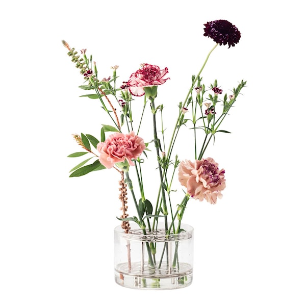 Klong Äng Vas har gett oss möjligheten att arrangera blommorna på ett nytt, vackert sätt. Vasen är tillverkad i mässing eller rostfritt stål med tillhörande glasinsats. Glasvasen är munblåst i Tjeckien. Den utskurna metallställningen fungerar som ett inbyggt blomsterstöd.