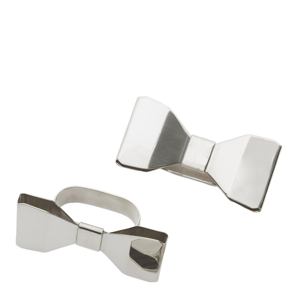 Bowie Servettringar 2-pack från Klong är en festlig servettring formad som en fluga. Den finns i två olika material - mässing eller rostfritt stål.