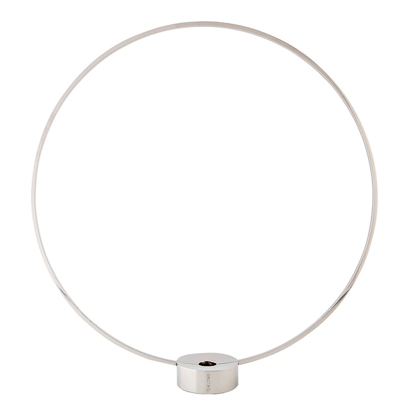 Klong Gloria Stor Ljusstake 46x43 cm är både en ljushållare och en skulptur. Den stora, svävande cirkeln i massiv mässing eller nickelpläterad mässing ramar in lågan och skapar ett skimrande nav av energi när ljuset brinner. När den är släckt blir cirkeln istället en elegant markör i rummet.