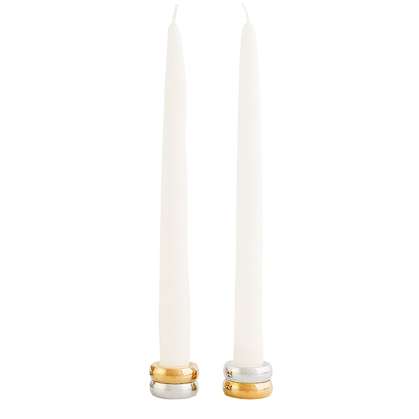 Ljusstakarna Marriage Duo består av två ljushållare avsedda för antikljus. De är gjorda av två förenade ringar som för tankarna till vigselringar som svetsats ihop. Den ena ringen är i blankpolerad aluminium och den andra mässing. Formgiven av Eva Schildt för Klong.