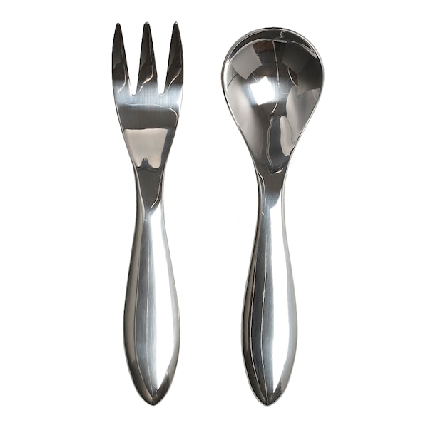 Serveringsbesticken Salvia, designade av Jonas Bohlin för Klong, är stora och generösa till sin form. De är rejäla och ligger skönt i handen, kommer i en elegant presentförpackning.