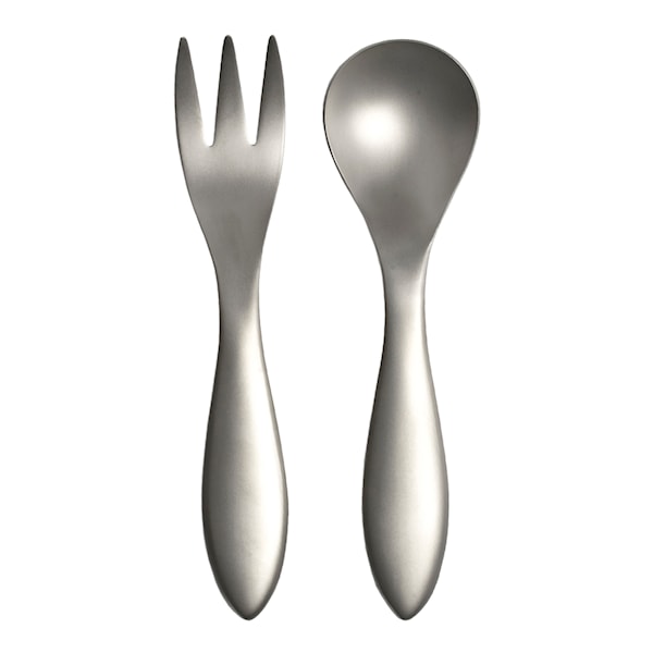 Serveringsbesticken Salvia, designade av Jonas Bohlin för Klong, är stora och generösa till sin form. De är rejäla och ligger skönt i handen, kommer i en elegant presentförpackning.