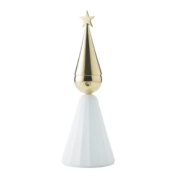 Klong Soprano ljusstake 20 cm i vitt och mässing är en harmonisk kombination av klassisk elegans och modern design. Det lekfulla formspråket ger ett lätt och luftigt uttryck, samtidigt som den solida metallkonstruktionen tillför ljusstaken tyngd och karaktär.
