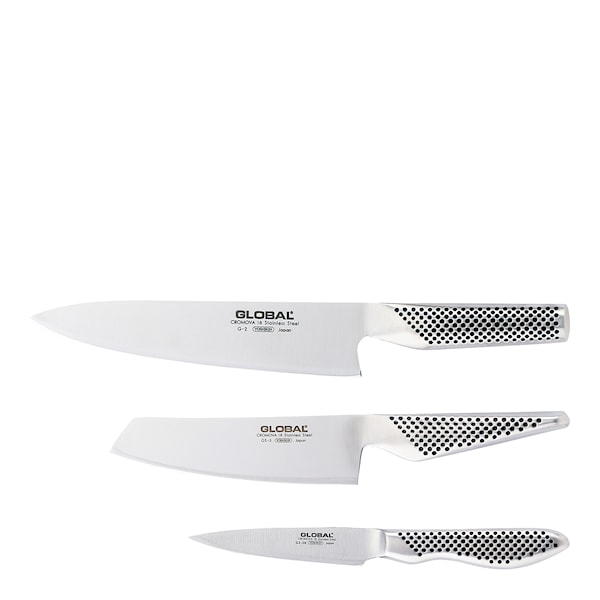 Global G-2538 knivset är ett proffessionellt knivset för kökets alla uppgifter. Det är ett set som kombinerar skärpa, balans och design – för dig som vill laga mat med känsla och kontroll.