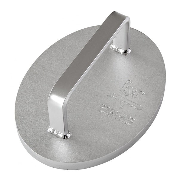 Grillvikt 1,5 kg i rostfritt stål från Kockums Jernverk är resultatet av ett spännande samarbete med den prisbelönta kocken Jacob Holmström. Under ett besök på fabriken i Anderstorp designades denna grillpress noggrant och lanserades senare i samband med öppnandet av Jacobs restaurang FYR i Halmstad.