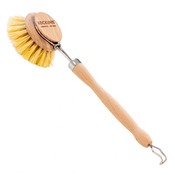 Diskborste i bokträ från Kockums. Den här diskborsten har borste av tagel som rengör utan att lämna repor. Varje diskborste är unik på grund av bokträts naturliga skiftningar och borsthuvudet går att byta vid behov. En diskborste som tar hand om disken skonsamt och som går att hänga upp när den inte används med upphängningskroken.