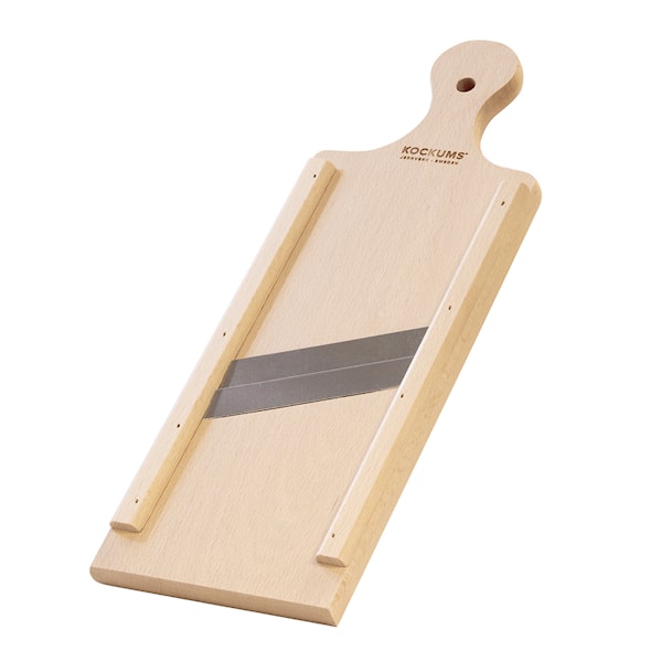 Få fina, jämna skivor varje gång med denna fina mandolin i bokträ från Kockums. Mandolinens vassa blad skär frukter, grönsaker och rotfrukter utan problem och gör att du sparar tid i köket. Ett behändigt redskap att ha i köket som underlättar de vardagliga sysslorna. Bladet är vasst så se till att använda mandolinen säkert genom att akta fingrarna.