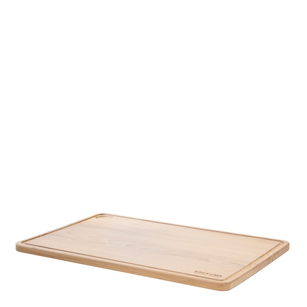 En fin skärbräda i bokträ från Kockums som går att använda till både matlagning och servering. När den används för att hacka grönsaker, frukt eller annan råvara samlas vätskan i spåren och minskar därmed spill i köket. Skärbrädans storlek gör den perfekt att använda till servering av munsbitar, charkuterier eller goda frukter och bär. Brädans enkla men moderna design gör den till en snygg detalj på bordet.