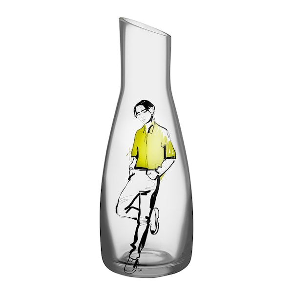 Karaffen och de andra föremålen i serien All About You från Kosta Boda fokuserar på känslor som kärlek, längtan och passion. Dessa starka känslor gestaltas genom glas med rena och mjuka linjer, samt målade motiv som inspirerats av modets värld.