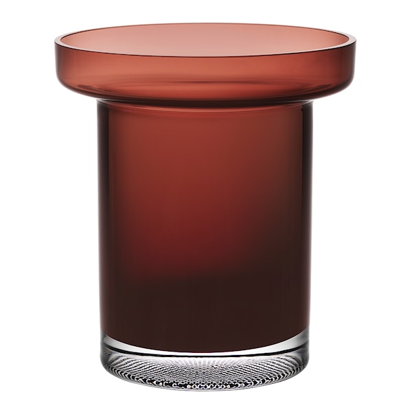 Tulpanvasen har en låg och bred form med en generös öppning, särskilt anpassad för fylliga buketter av tulpaner. Den tunga bottnen är dekorerad med ett sinnrikt mönster som förstärker ljusreflektionerna och ger glaset en levande känsla. Formen gör vasen till ett naturligt val för kortare stjälkar och täta blomsterarrangemang.