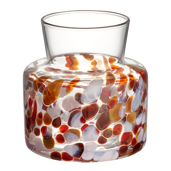 Meadow vas höst 11,5 cm från Kosta Boda är inspirerad av en blomstrande äng, där varje detalj speglar naturens skönhet. Denna vasserie passar lika bra som en fristående dekoration som fylld med en mindre bukett blommor. Med hjälp av en unik glaskrossteknik blir varje vas ett eget konstverk.