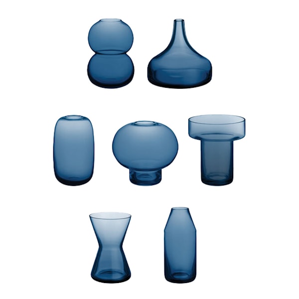 Midsummer minivaser 7 st i midnattsblå från Orrefors är en limiterad utgåva på endast 400 exemplar, inspirerad av en av Sveriges mest älskade högtider. Samarbetet med Claesson Koivisto Rune har resulterat i en serie med sju minivaser, där varje vas är inspirerad av en ängsblomma och har sin egen unika form.