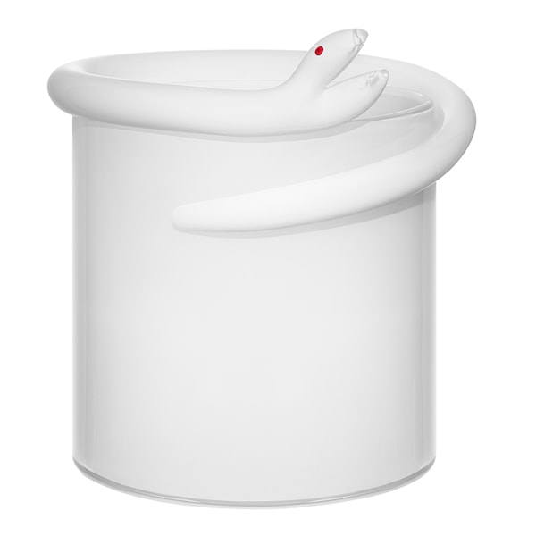 Glasvas i munblåst glas med en ringlande orm på kanten, signerad konstnären Ulrica Hydman Vallien. Perfekt ett fång blommor eller stående precis som den är.
