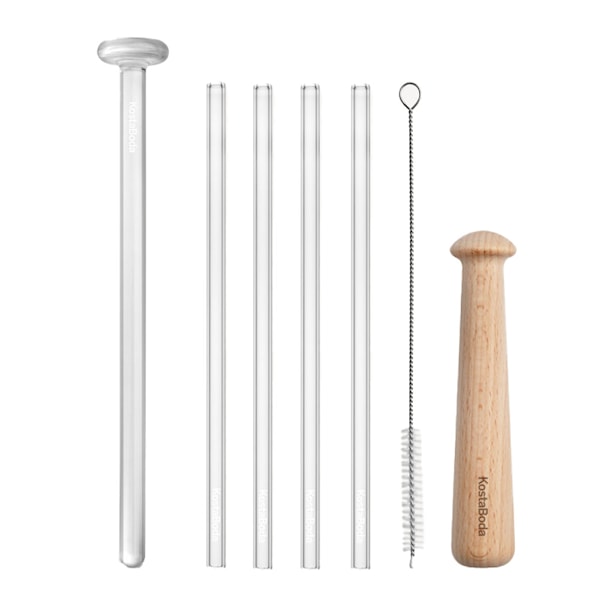 Setet innehåller en omrörare, 4 st sugrör i glas med rengöringsborste samt en moddlare. Detta ger dig allt du behöver för att skapa allt från longdrinks till alkoholfria alternativ. Designen är stilren och passar naturligt ihop med övriga produkter i serien. Designat av Matti Klenell, med fokus på enkelhet och användarvänlighet.