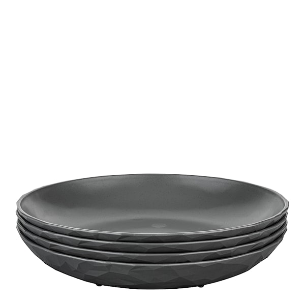 Club djup tallrik 22 cm från Koziol – 4-pack – erbjuder stil och funktion i ett. Perfekt för soppor, pastarätter eller frukost under bar himmel. Det fasettslipade mönstret ger tallrikarna ett elegant uttryck och extra grepp.