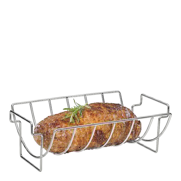 Praktiskt ställ till grillen, perfekt då du ska tillaga revbensspjäll, sk spare ribs. Grillhalstret går att använda åt båda hållen och passar även till stek och kyckling. Låt grillsäsongen börja!