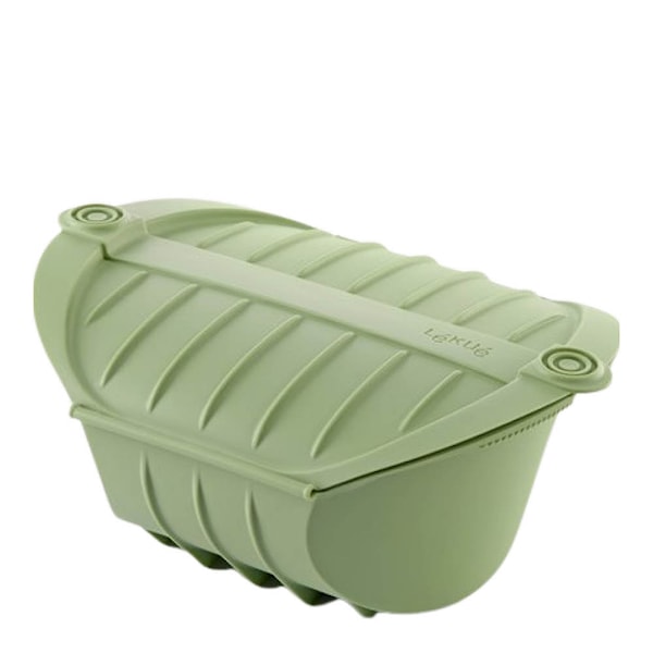 Lekué djup ångkokare för mikrovågsugn 4 portioner grön gör det enkelt att tillaga större mängder råvaror med ett jämnt och skonsamt resultat. Den generösa, djupa formen ger gott om utrymme, medan konstruktionen i 100 % platinum-silikon kombinerar låg vikt med hållbarhet.
