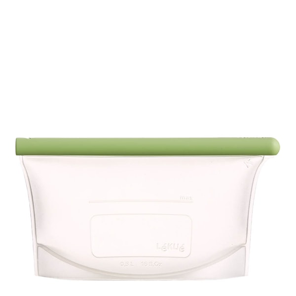 Praktisk, tät och återanvändbar – Lékués silikonpåse på 0,5 liter är ett återanvändbart alternativ till plastpåsar och engångsförpackningar. Förvara både fasta och flytande livsmedel säkert och lufttätt i kylskåpet, frysen eller på hyllan. Den står stabilt både vertikalt och horisontellt.