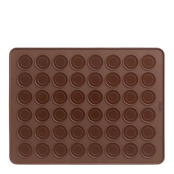 Silikonmaterialet är non-stick, så kakorna lossnar lätt när de är färdiggräddade. Du slipper bakplåtspapper som glider omkring, och får en jämn värmefördelning över hela ytan. Mattan rymmer upp till 48 halvor (24 dubbla macarons) per gräddning.
