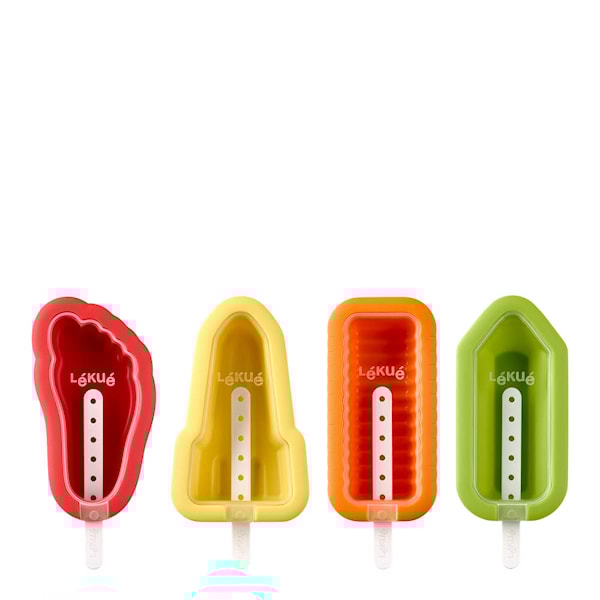 Låt kreativiteten flöda i köket med detta glassformset från Lékué – fyllt av charm, nostalgi och massor av möjligheter. Med fyra olika formar i lekfulla former får varje glass en egen personlighet, och barnen kommer att älska att hjälpa till! Formarna är tillverkade av flexibelt platinasilikon som gör det lätt att lossa glassen, och de medföljande locken skyddar innehållet från smaköverföring i frysen.