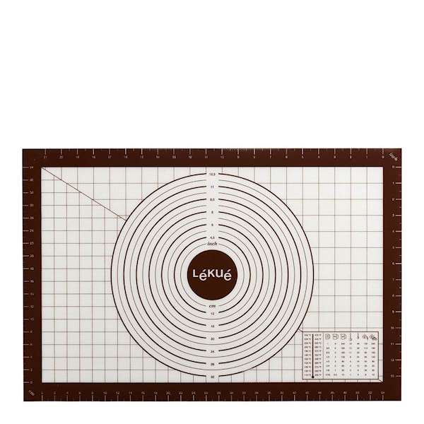 Vill du baka med precision – och mindre stök? Då är Lékués non-stick bakmatta i silikon med måttangivelser ett givet val. Du kan knåda, kavla och forma direkt på mattan, utan att behöva mäta med separata verktyg. Ringarna i mitten hjälper dig få till exakt storlek på pizzabottnar och tårtor, medan rutnätet gör det enkelt att skära deg i lika stora rutor.