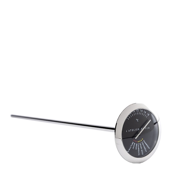 Denna eleganta vintermometer i rostfritt stål från L'Atelier du Vin är ett oumbärligt verktyg för vinälskaren som vill servera sitt vin vid perfekt temperatur. Varje vintyp kräver sin specifika temperatur för att framhäva de bästa smakerna och aromerna, och med denna termometer kan du enkelt mäta och övervaka temperaturen direkt i flaskan. Designen är både stilren och funktionell; placera termometern i vinflaskan och avläs den exakta temperaturen i grader Celsius. Detta gör det enkelt att säkerställa optimala förhållanden för en fulländad vinupplevelse, och vintermometern är en idealisk present till den hängivna vinentusiasten.