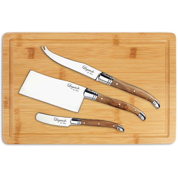 Denna ostbricka med tillhörande knivar från Laguiole by Hâws ger en stilfull inramning till ostserveringen. Skärbrädan är tillverkad i bambu och mäter 20x30 cm – en perfekt storlek för både små och stora tillfällen. Setet innehåller tre knivar i 420 rostfritt stål, alla märkta med Laguiole-logotyp och formade enligt den klassiska designtraditionen från den franska byn Laguiole. Handtagen i olivträ ger setet ett naturligt och elegant uttryck.